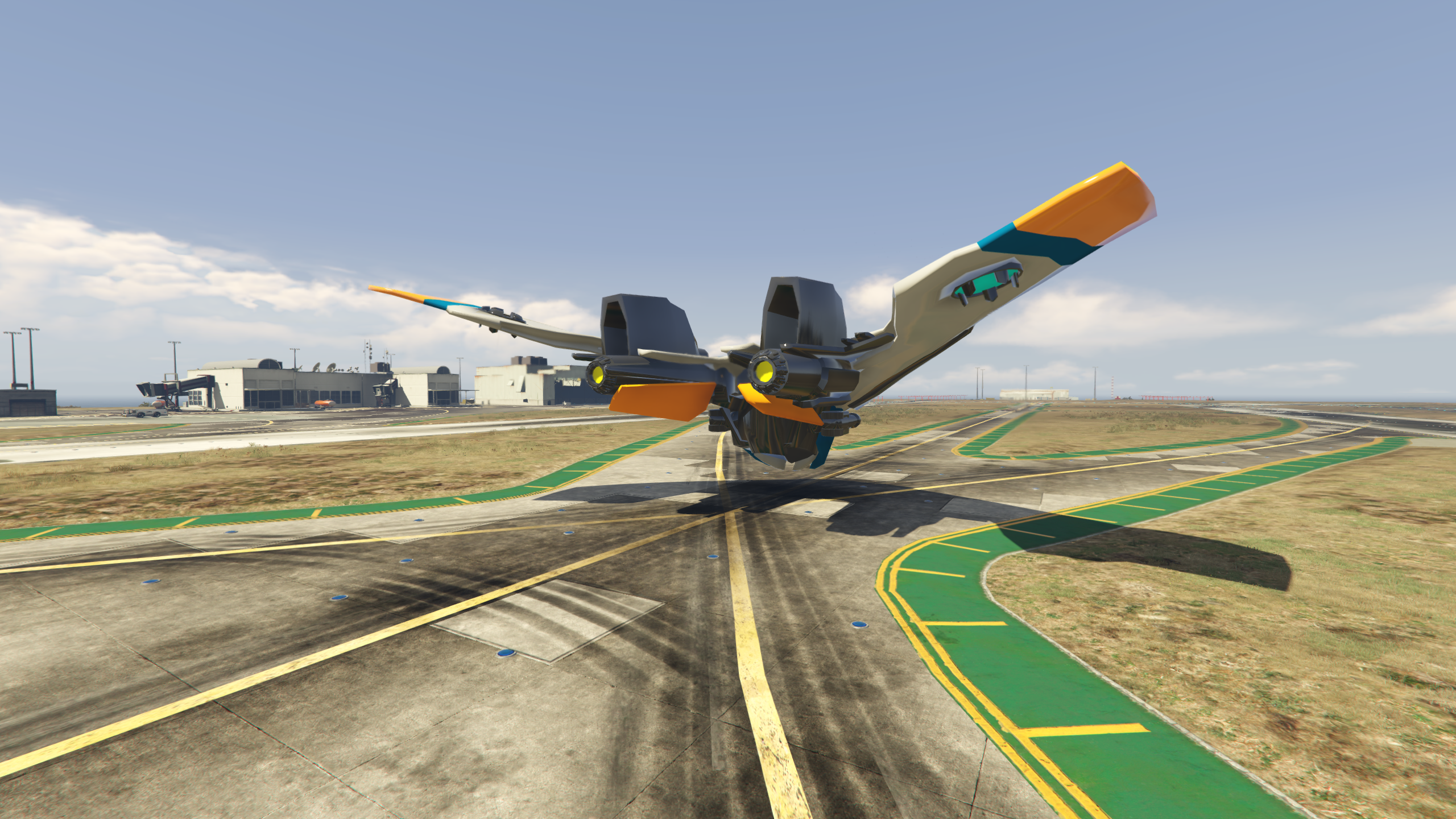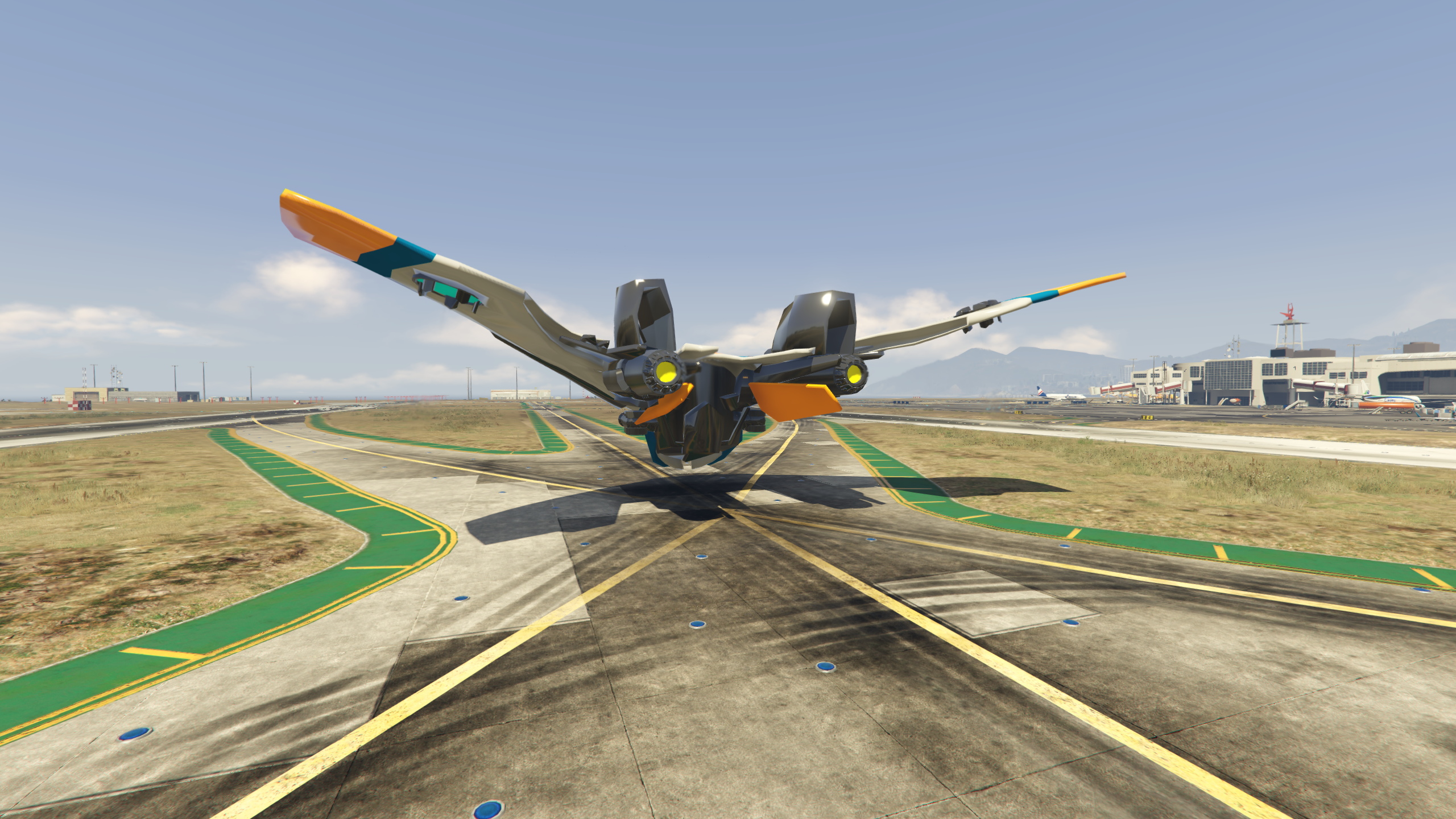 - Initial wings in landing mode with option to switch to free mode using the E key on the keyboard or D-Pad Right button on controller