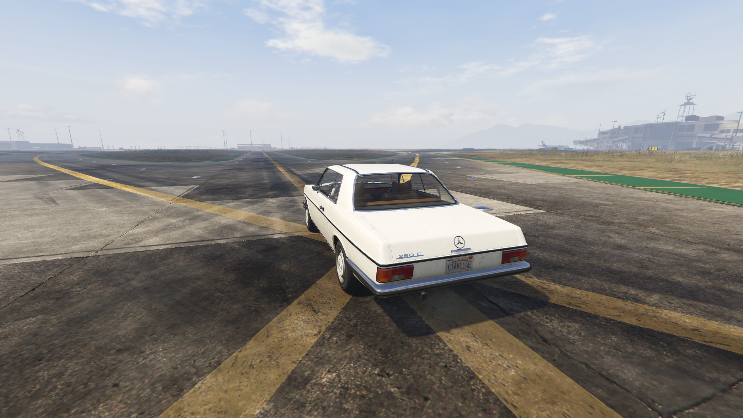 No factory-built W114 coupe-convertibles exist. However, aftermarket companies have done conversions, and this mod offers a similar transformation. The car spawns as a hardtop coupe but can be converted to a cabrio at "Los Santos Customs" or using a trainer. Note that the roof, rear windows, and rear windshield are parts of "EXTRA_2" which always spawns. The conversion disables all windows and the rear windshield, and without tuning (with the roof), windows and rear windscreen are breakable with the correct IDs. Don't remove EXTRA_2 with the trainer, as the open soft top will not appear.